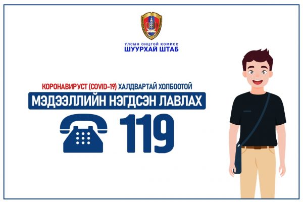 Тухайлбал иргэд ковидтой холбоотой асуудлаар зөвлөгөө, мэдээлэл авах, санал, гомдол, хүсэлтээ илэрхийлэх зэрэг нэгдсэн мэдээллийг 119 тусгай дугаарт залган авах боломжтой.