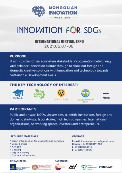 Онлайн сонгон шалгаруулалтад оролцох бүртгэлийн линк: https://bit.ly/InnovationExpo2021