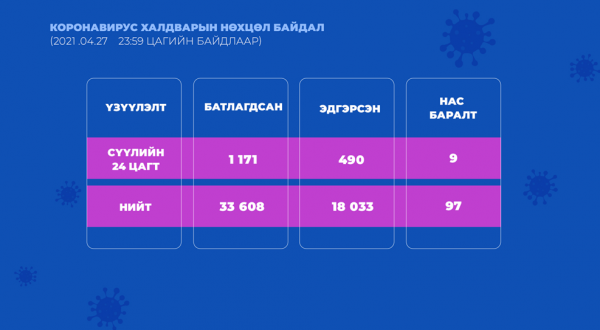 Харамсалтай нь сүүлийн 24 цагийн хугацаанд 9 иргэн нас барж, улсын хэмжээнд нийтдээ 97 хүн коронавирусийн халдвараар нас бараад байна.