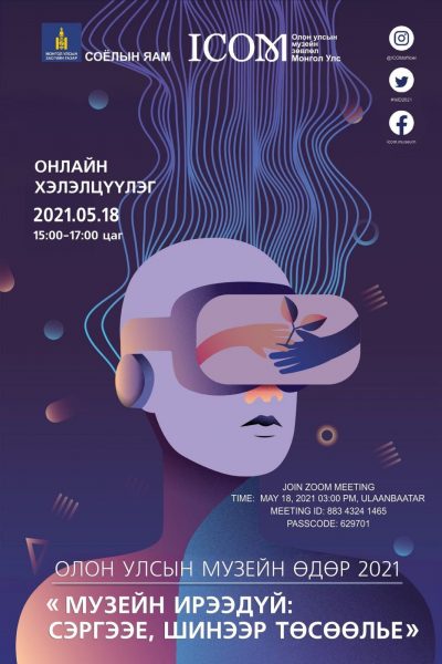 Соёлын яамны Соёлын өвийн газар, Олон улсын музейн зөвлөлийн үндэсний хороо хамтран 5 дугаар сарын 18-ны өдөр онлайн хэлэлцүүлэг зохион байгуулж, музейн ирээдүй, өнөөдрийн нийгэм соёлын өөрчлөлтийг тусгах, маргаашийн музейг бий болгох инновацлаг үйл ажиллагаа, монголын музейнүүдийн Олон улсын музейн өдрийн үйл ажиллагааны талаар санаа бодлоо солилцоно.