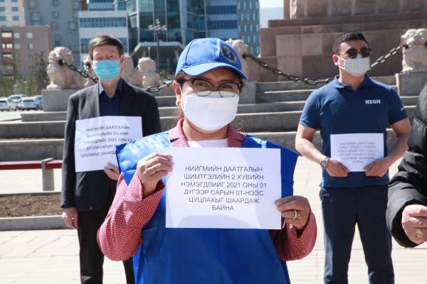 Монголын Үйлдвэрчний Эвлэлийн Холбооны төлөөллүүд сайн дурын үндсэн дээр Сүхбаатарын талбай, Засгийн газрын ордны үүдэнд цуглаан зохион байгуулж, УИХ-ын гишүүдэд нийгмийн даатгалын шимтгэлийн хоёр хувийн нэмэгдлийг 2021 оны нэгдүгээр сарын 1-нээс тооцон цуцлахыг шаардаж дуу хоолойгоо илэрхийллээ.