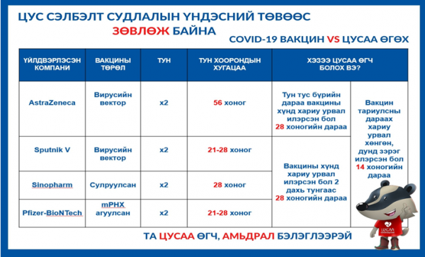 Коронавируст цар тахлын үед Монгол улсын засгийн газраас халдварын тархалтыг таслан зогсоох, голомтыг хумих зорилгоор хөл хориог шат дараатайгаар дөрвөн удаа тогтоож, ард иргэдийг вакцинжуулах ажил эхэлсэн.