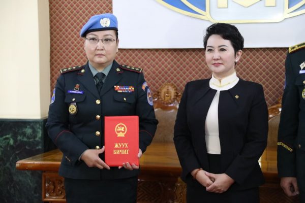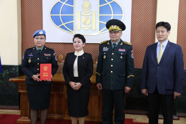 НҮБ-ын Энхийг сахиулах ажиллагаанд явсан анхны эмэгтэй алба хаагчийг Жуух бичгээр шагналаа