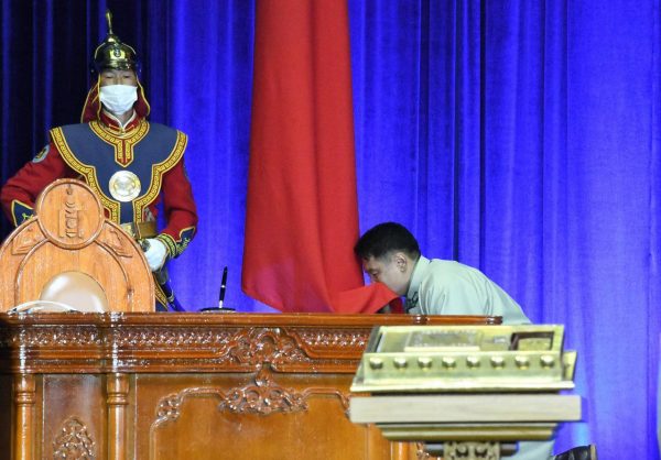Шинэ сонгогдсон Ерөнхийлөгч Ухнаагийн Хүрэлсүх индэрт очиж, Үндсэн хуулийн уг эх дээр баруун гараа тавьж, “Монгол Улсын тусгаар тогтнол, бүрэн эрхт байдал, ард түмнийхээ эрх чөлөө, үндэсний эв нэгдлийг эрхэмлэн хамгаалж, Үндсэн хуулийг дээдлэн сахиж, Монгол Улсын Ерөнхийлөгчийн үүргийг шударгаар биелүүлэхээ батлан тангараглая” хэмээн Монгол Улсын Ерөнхийлөгчийн тангаргийг дээдлэн дуудав. Үүний дараа шинэ сонгогдсон Ерөнхийлөгч тангаргийн бичигт гарын үсэг зурж, УИХ-ын даргад гардууллаа.