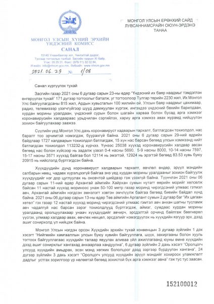Ковид-19 цар тахлын нөхцөл байдалтай холбоотойгоор хурдан морь унаач хүүхдийн амь нас, эрүүл мэндийг хамгаалах зорилгоор Хүний эрхийн Үндэсний Комиссоос энэ оны Үндэсний их баяр наадмын хурдан морины уралдааныг цуцлах, хойшлуулах санал, зөвлөмжийг гаргалаа.