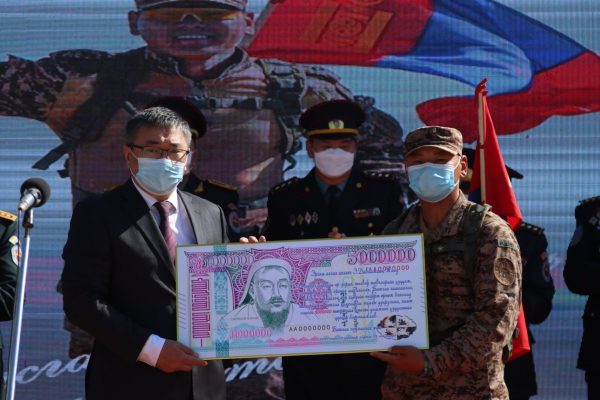 Энэхүү ёслолын үеэр Батлан хамгаалахын дэд сайд Б.Баярмагнай үг хэлж, Батлан хамгаалах яамны шагнал болох 5 сая төгрөг, цэргийн дүрэмт хувцсыг гардуулан өгсөн.
