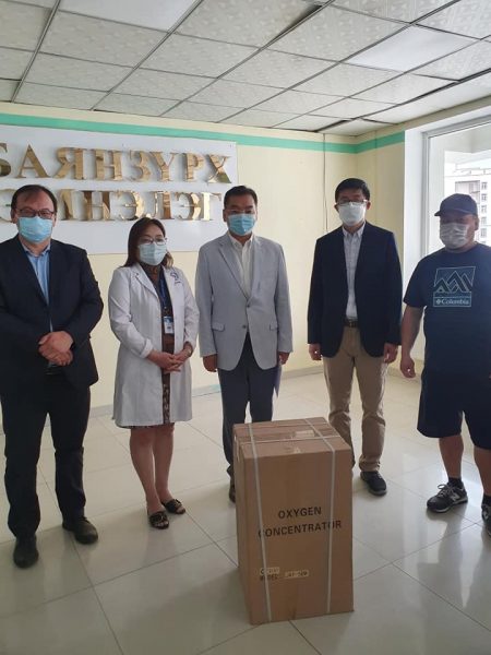АНУ-д бүртгэлтэй “Говь сан”-гаас Монгол улсын 21 аймаг, Улаанбаатар хотын 9 дүүргийн эмнэлэгт нийт 60 ширхэг хүчилтөрөгчийн өтгөрүүлэгч аппарат, 60 ширхэг хүчилтөрөгч, пульс хэмжигч багажийг өнөөдөр хандивлалаа.