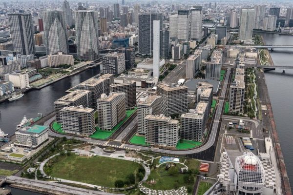 Тосгон нь Токиогийн далайн эрэг орчмын Харүми дүүрэгт, Үндэсний цэцэрлэгт хүрээлэнгээс зургаан кмийн зайд байрладаг. Тосгонд тамирчид байрлах 1800 гаруй барилга бий. Энд олимпын турш 18 мянга орчим зочин төвхнөх юм.