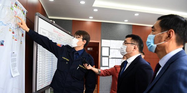 Мөн үүний дараа Хан-Уул дүүргийн Шуурхай штабаас хийж, хэрэгжүүлж байгаа ажлын явцыг сонслоо. Дүүргийн хэмжээнд вакцины дөрвөн цэг, Тандалт, хариу арга хэмжээний хоёр баг үйл ажиллагаа явуулж байна. Хан-Уул дүүргийн Засаг даргын орлогч А.Амартүвшин “Өнөөдрийн байдлаар эмнэлэгт 1388, тусгаарлах байранд хоёр, гэрээр 709 хүн эмчлэгдэж байгаа. 24.135 хүн эдгэрч, 941 хүн ойрын хавьтлаар гэрийн тусгаарлалтад байна” гэв. Мөн “Хариуцлагын гэрээ” байгуулсан 42 аж ахуйн нэгжид шалгалт хийхэд таван зөрчил илэрснийг газар дээр нь арилгуулжээ.