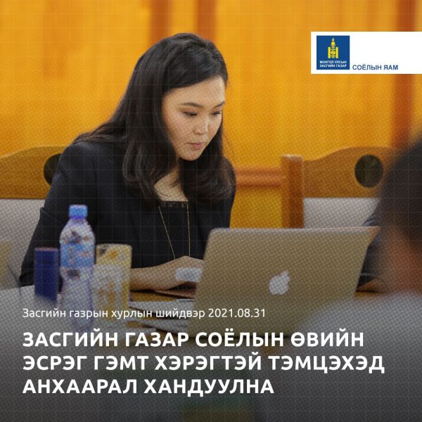 Засгийн газрын ээлжит хуралдаан өнөөдөр /2021.08.31/ боллоо. Хуралдаанд Соёлын сайд Ч.Номин соёлын биет өвийн хадгалалт, хамгаалалтын асуудлаар танилцуулга хийлээ.