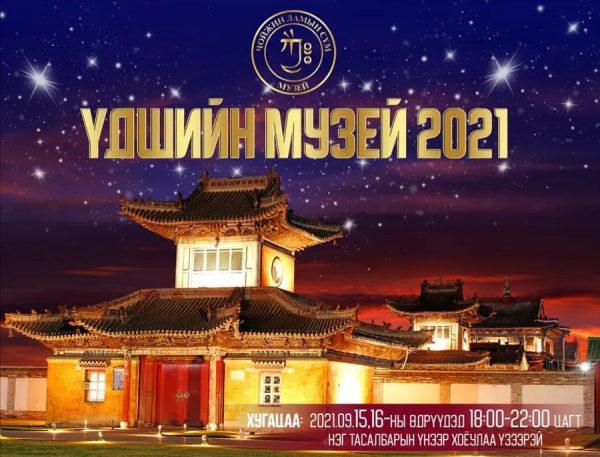 Энэ жил “Үдшийн музей-2021” үйл ажиллагаа есдүгээр сарын 15, 16-ны 18:00-22:00 цагийн хооронд болно.
