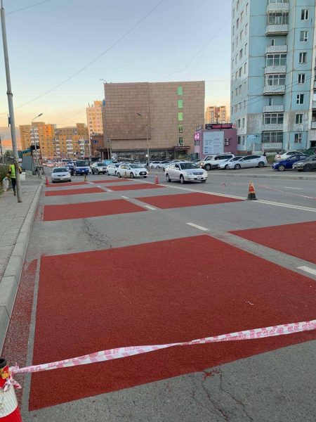 Ойрын өдрүүдэд Баянхошуу Жанцангийн уулзвар болон Гранд плазагийн авто замын зүүн талын уулзварт өнгөт хучилт хийснээр энэ жилийн ажил дуусна гэж Улаанбаатар хотын Захирагчийн ажлын албанаас мэдээллээ. Өвлийн улиралд авто замд элс, давс цацаж халтиргаанаас хамгаалдаг ч -20 хэмээс дээш хүйтэнд элс давс нь цас, мөстэй барьцалдан дагтаршиж, үр дүн муутай байдаг. Тиймээс энэхүү өнгөт керамик хучилт цэвэрхэн бөгөөд үр дүн сайтай хамгаалалт болдгийг мэргэжилтнүүд тодотгож байна.