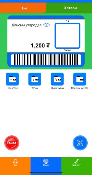 Торгууль төлөхөөс өмнө Гэрэгэ апп дахь хэтэвчээ цэнэглэсэн байх шаардлагатай. Өөрөөр хэлбэл гэрэгэ аппаар өөр бусад олон үйлчилгээний төлбөрийг төлж болох бөгөөд үүний тулд таны мөнгө Гэрэгэ компаний таны хэтэвчинд байрших шаардлагатай байх нь. Дээрх зургийн хувьд төлбөр төлөөд дансанд маань үлдсэн 1,200₮-ийг харуулж байгаа нь юм.