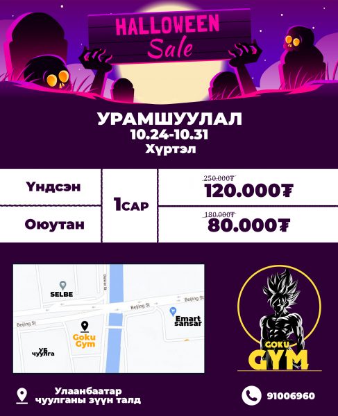 “Goku gym” фитнесс клуб шинээр үүд хаалгаа нээлээ. Хотын төвд ая тухтай, цэвэрхэн орчинд сүүлийн үеийн тоног төхөөрөмж, иог, саунтай цогц үйлчилгээг нэг дороос авах боломжийг олгож байна. Эрүүл амьдралын хэв маягийг сонгож, дасгал хөдөлгөөнтэй байхыг хүссэн хэн бүхэнд тус клубын үүд хаалга нээлттэй.