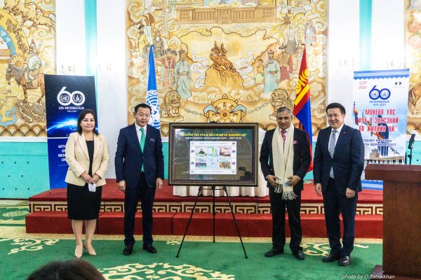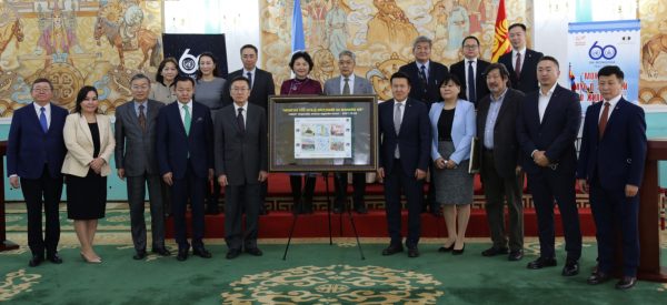 Монгол Улс НҮБ-д элссэний 60 жилийн түүхэн ойг тэмдэглэх “НҮБ-ын 7 хоног”-ийн цуврал арга хэмжээний хүрээнд “Монгол Улс НҮБ-д элссэний 60 жилийн ой” сэдэвт шуудангийн маркийн анхны өдрийн нээлтийн ёслол 2021 оны 10 дугаар сарын 26-ны өдөр Гадаад харилцааны яамны “Номин” танхимд боллоо.