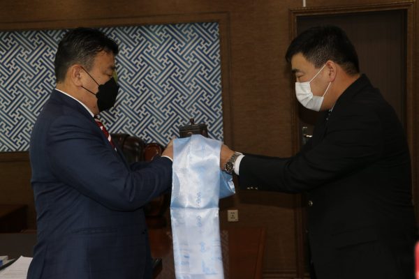 УИХ-ын гишүүн Ц.Идэрбат шинээр томилогдсон Хэнтий аймгийн Засаг дарга Ц.Чогсомжавын тамгыг гардуулан өглөө.
