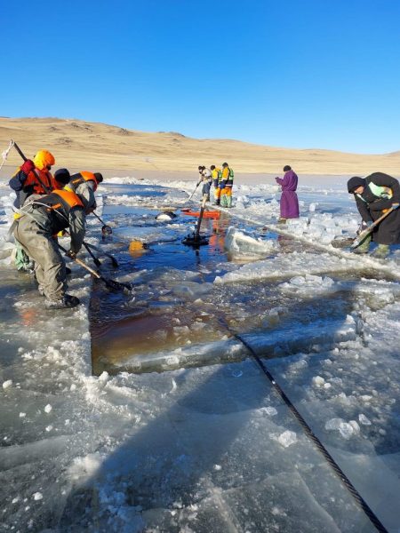 Нуурын мөсний зузаан 60 см, усны гүн нь 3.1 метр байлаа гэж Хөвсгөл аймгийн Онцгой байдлын газраас мэдээллээ.