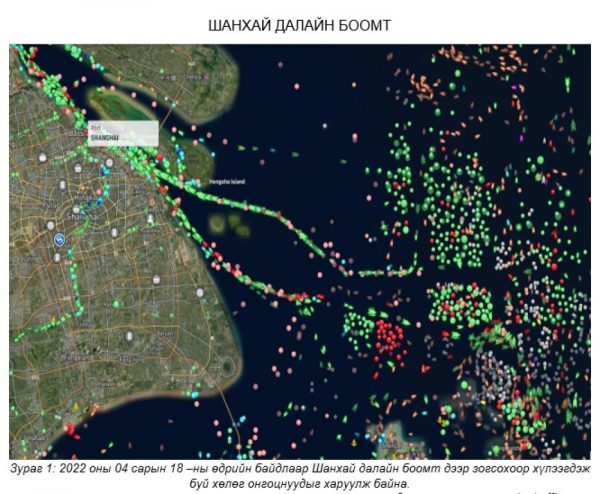 Тодруулбал, БНХАУ-ын Шанхай хотод коронавирусийн халдварын тохиолдол ихэсч, хөл хорио тогтоосонтой холбоотойгоор 2022 оны дөрөвдүгээр сарын 18-ны байдлаар далайн боомт дээр 809 хөлөг онгоц зогсож байна.