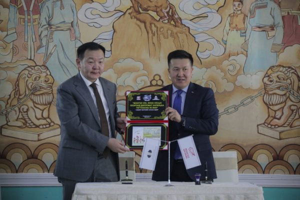 “Монгол Шуудан” ХК-ийн Гүйцэтгэх захирал Б.Анхбаатар ёслолд оролцсон хүндэт зочдод дурсгалын марк гардуулав. Маркийг бүтээхэд ахмад дипломатч О.Батсайхан мэргэжлийн зөвлөгөө өгч хамтран ажилласан болно.