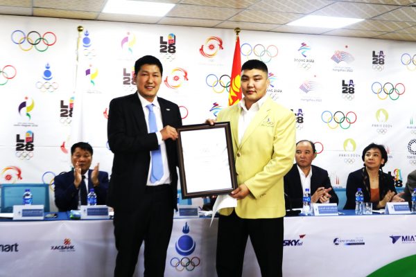Мөн түүний спорт, олимпизмын үйл хэрэгт оруулсан хувь нэмрийг үнэлэн МҮОХ-ны “Алтан очир” одонгоор шагнав.