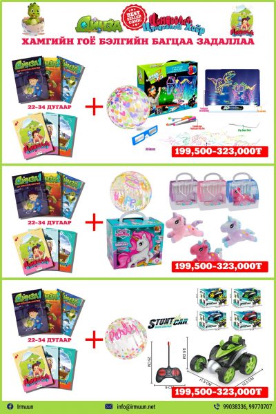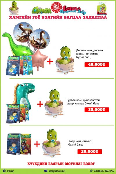 Хэрэв та албан байгууллагын хамт олныхоо бяцхан үрсэд дээрх гайхалтай бэлгүүдийг өгөхийг хүсвэл 99112977 дугаарт холбогдоно уу.