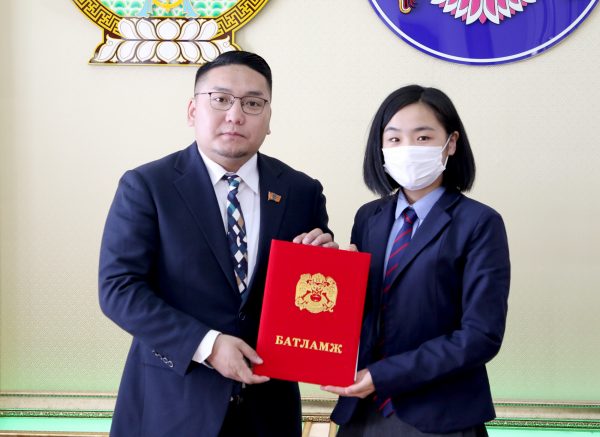 -Өнөөдөр ийм шагнал авна гэдгээ огт мэдээгүй. Багш маань маргааш энд ирээрэй гэхэд нь хүүхдийн баярын бэлэг авах байх гэж бодсон. Гэтэл ийм том шагнал авсандаа үнэхээр баяртай байна. Аав, ээжийнхээ нэрийг дуудуулаад, амжилтаа дуудуулаад шагнал авсан мэдрэмж хамгийн гоё байлаа. Эндээс гараад хамгийн түрүүнд гэр бүлийнхэнтэйгээ шагналаа хуваалцмаар байна.