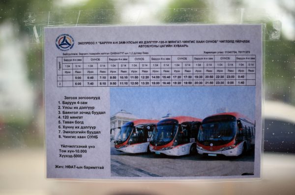 “Чингис хаан” олон улсын нисэх онгоцны буудлын чиглэлд үйлчилж буй хамгийн эхний автобус өглөөний 05:00 цагаас явдаг бол шөнийн 01:40 цаг хүртэл үйлчилдэг. Одоогоор зорчигч урсгал бага байгаа ч алсдаа нэмэгдэнэ гэдэгт эргэлзэхгүй байгаа юм. Автобусны цагийн хуваарийг онгоцны нислэгтэй уялдуулж гаргаж буй тул зорчигчид онгоцноос хоцрох вий гэж болгоомжлох хэрэггүйг мэргэжилтнүүд хэлж байлаа.