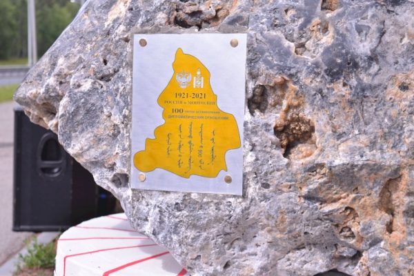 Төлөөлөгчид үзэсгэлэнгийн арга хэмжээнд оролцохын зэрэгцээ Монгол, Орос хоёр улс хамтран 2021 онд ёслол төгөлдөр тэмдэглэн өнгөрүүлсэн Монгол Улс, Оросын Холбооны Улсын хооронд дипломат харилцаа тогтоосны 100 жилийн ойд зориулж Монгол Улсаас бэлэг болгон ирүүлсэн хоёр тонны жинтэй хайлуур жоншийг ОХУ-ын Екатеринбург хотын Олон улсын чулуун цэцэрлэгт хүрээлэнд, Ази, Европ хоёр тивийн уулзвар цэг дээр хүндэтгэлтэйгээр суурилуулах ёслолын арга хэмжээнд оролцов. Тус чулуун үзмэрийг Монгол үндэсний гэрийг бэлгэдсэн дугуй хэлбэртэй, боржин чулууг шигтгэж чимэглэсэн цагаан өнгийн суурин дээр байрлуулжээ.