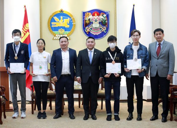 Олимпиадын дөрвөн төрлөөс медаль хүртсэн сурагчдын медалийг Нийслэлийн Засаг даргын Нийгмийн салбар, ногоон хөгжил болон агаар, орчны бохирдлын асуудал хариуцсан орлогч З.Төмөртөмөө гардуулан өглөө.