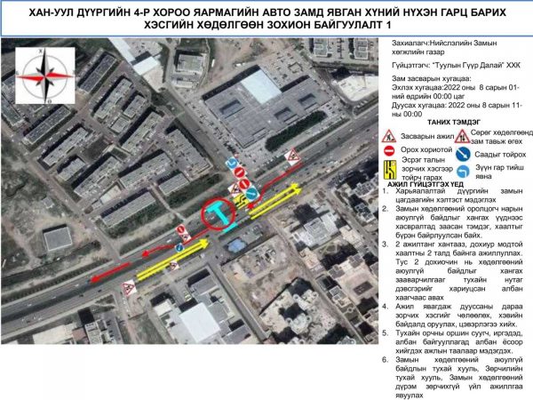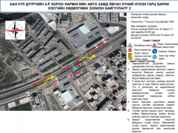 -Наймдугаар сарын 11-22-ны хооронд баруунаас зүүн тийш чиглэсэн хөдөлгөөний зохион байгуулалтад тус тус өөрчлөлт оруулах юм.