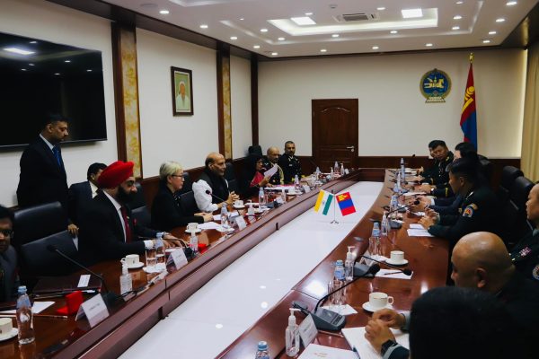 Монгол Улсын Батлан хамгаалахын сайд Г.Сайханбаярын урилгаар БНЭУ-ын Батлан хамгаалахын сайд Ражнат Сингх манай улсад 09 дүгээр сарын 05-07-ны өдрүүдэд албан ёсны айлчлал хийж байна. Өнөөдөр Батлан хамгаалахын сайд Г.Сайханбаяр БНЭУ-ын Батлан хамгаалахын сайд Ражнат Сингх нарын хоёр талын уулзалт боллоо.