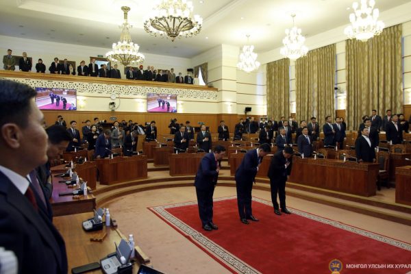 Намрын чуулганы нээлтийн эхэнд Эзэн Чингис хааны эш хөрөгт хүндэтгэл үзүүлэх ёслол болов.