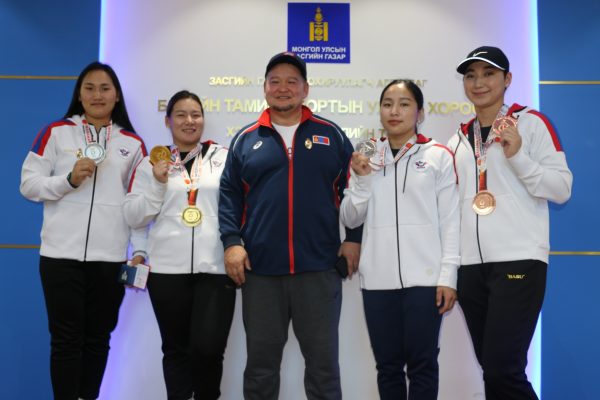 Олимп, нийтийн биеийн тамир, спортын Үндэсний хорооны дарга Б.Бат-Эрдэнэ, Биеийн тамир, спортын улсын хорооны дарга Д.Жаргалсайхан нар Бахрейн улсын Манама хотод болсон хүндийн өргөлтийн Ази тивийн аварга шалгаруулах тэмцээнд өндөр амжилт үзүүлсэн баг тамирчдыг хүлээн авч уулзаж, шагнал гардуулав.