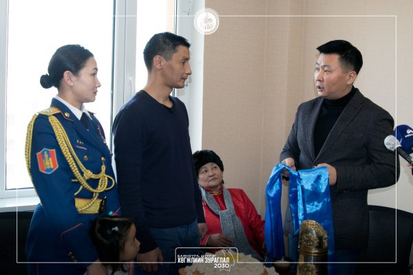 Энэ хүрээнд Онцгой байдлын Ерөнхий газрын дарга, хошууч генерал Г.Ариунбуян УИХ-ын гишүүн Э.Бат-Амгалан болон Баянзүрх дүүрэгт хамтран ажиллах санал тавьж ажил хэрэг болсны үндсэнд өнөөдөр Баянзүрх дүүргийн Онцгой байдлын хэлтсийн алба хаагч, салбартаа 10 жил ажиллаж буй Б.Баярмаа 2 өрөө байраар шагнууллаа.
