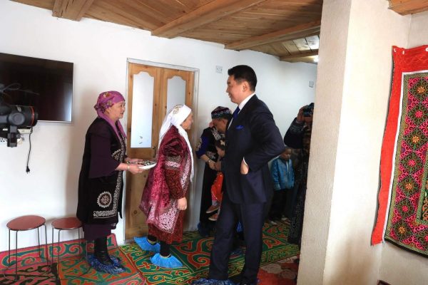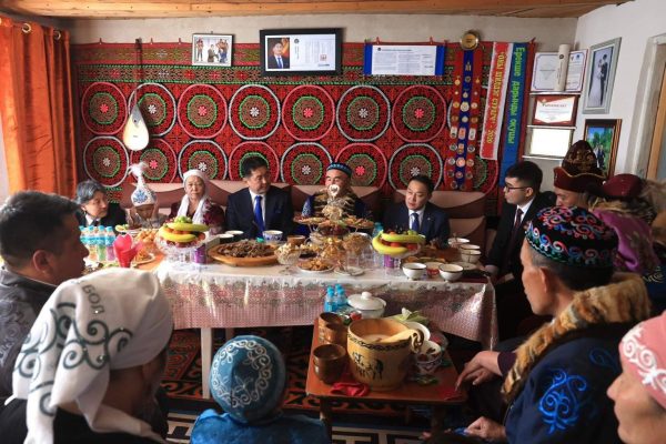 Монгол Улсын Ерөнхийлөгчийг Д.Багдаулетийн аав Т.Даргер, ээж Ш.Перизат болон гэр бүлийнхэн угтан мэндчилж, казах түмний Наурызын баярын мэндийг хүргэлээ.