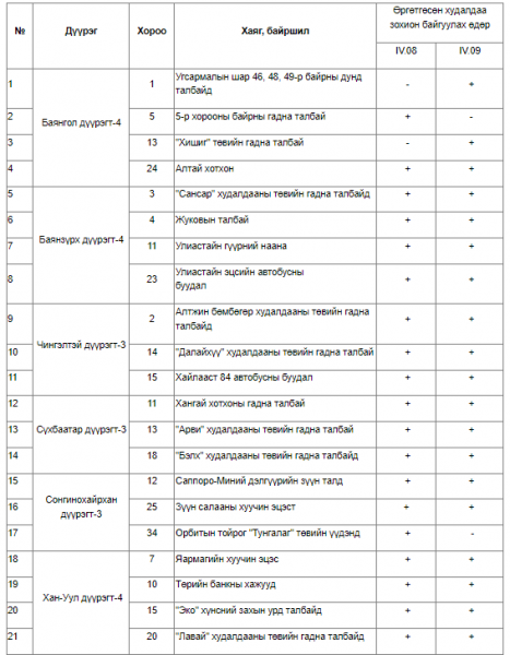 Тодруулбал, Чингэлтэй, Сүхбаатар, Сонгинохайрхан дүүрэгт тус бүр гурав, Баянгол, Баянзүрх, Хан-Уул дүүрэгт тус бүр дөрөв, нийт 21 байршилд өргөтгөсөн худалдаа зохион байгуулна. Өнгөрсөн хугацаанд 180 тонн гаруй мах борлуулсан нь бэлтгэсэн нийт махны 2.4 хувийг эзэлж байна.