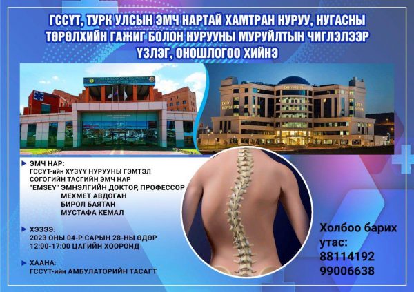 Гэмтэл согог судлалын үндэсний төвөөс ирэх тавдугаар сард Турк улсын Истанбул хотын “Emsey” эмнэлэгтэй хамтран нуруу, нугасны төрөлхийн гажиг болон нурууны муруйлтын чиглэлээр үзлэг оношилгоо, мэс заслын эмчилгээ хийхээр боллоо.