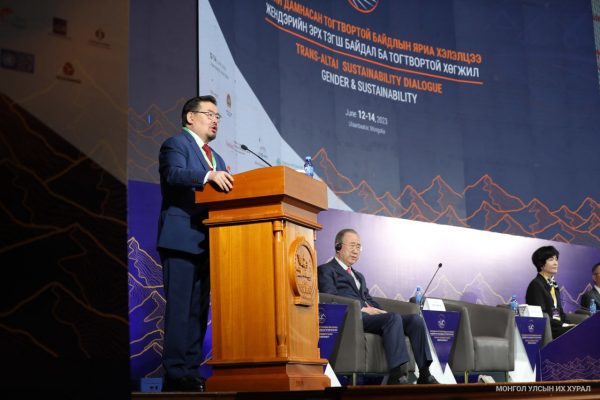 Монгол Улсын Их Хурал, АНУ-ын Стэнфордын их сургууль, Бан Ги Мун сан, БНСУ-ын Эва эмэгтэйчүүдийн их сургуультай хамтран “Алтай дамнасан тогтвортой байдлын яриа хэлэлцээ-жендэрийн эрх тэгш байдал ба тогтвортой хөгжил” чуулга уулзалт /2023.06.12/ өнөөдөр Төрийн ордонд эхэллээ.