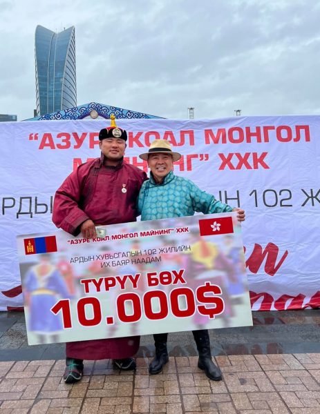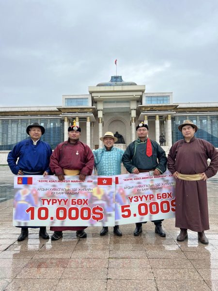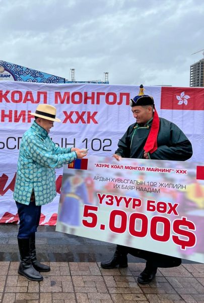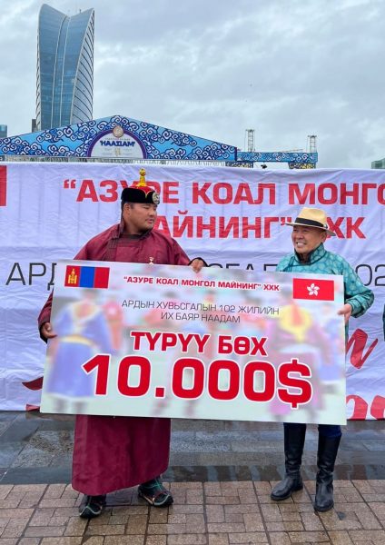“Азуре Коал Монгол Майнинг” ХХК-иас Үндэсний их баяр наадмын хүчит 512 бөхийн барилдаанд ес даван түрүүлсэн Архангай аймгийн Цэнхэр сумын харьяат, Алдар спорт хороо, Бөхбилэгт дэвжээ, Нутгийн буян группийн бөх, Улсын арслан Мягмарын Бадарчид 10.000 доллар, үзүүрлэсэн Өвөрхангай аймгийн Төгрөг сумын харьяат, Алдар спорт хороо, Их Монголын хүчтэн дэвжээ, Нутгийн буян группийн бөх, Улсын гарди Цэдэнсодномын Бямба-Отгонд 5.000 доллар тус бүр гардуулан өглөө.