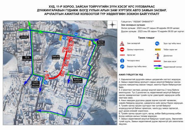 Зам хаах хугацаанд замын хөдөлгөөнийг дээрх зураглалын дагуу зохион байгуулна.