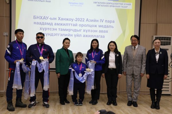 Азийн зуны спортын IV наадамд амжилт гаргасан тамирчид болон баг дасгалжуулагчдыг Хөдөлмөр, нийгмийн хамгааллын сайд Х.Булгантуяа болон бусад холбогдох удирдлагууд хүлээн авч, баяр хүргэн хүндэтгэл үзүүллээ.