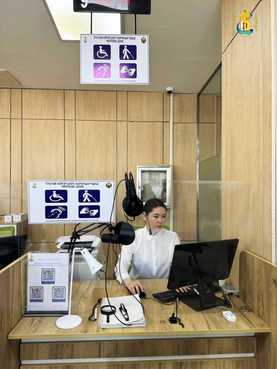 ХУД-ийн Улсын бүртгэлийн хэлтэс нь байгууллагын үйлчилгээний стандартыг бүрэн хэрэгжүүлэх зорилгоор Тусгай хэрэгцээт иргэдэд үйлчилгээ үзүүлэх цонхыг иж бүрэн тохижууллаа. Уг цонхоор харааны, сонсголын болон хэл ярианы бэрхшээлтэй иргэд үйлчилгээ авахад шаардлагатай хэрэгслийг байршууллаа.