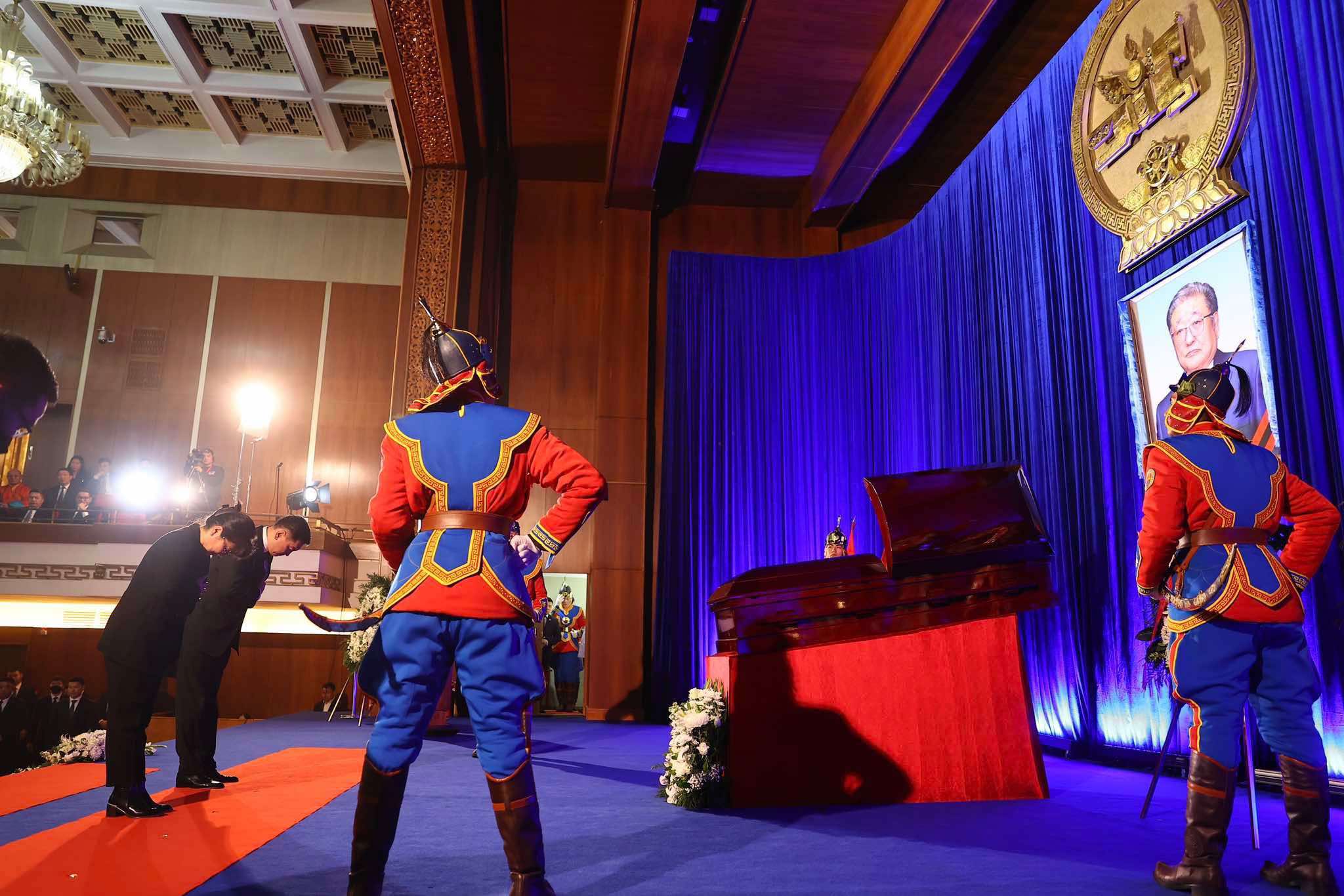 Монгол Улсын Ерөнхийлөгч Ухнаагийн Хүрэлсүх Монгол Улсын анхны Ерөнхийлөгч, Бүгд Найрамдах Монгол Ард Улсын Ардын Их Хурлын Тэргүүлэгчдийн дарга, тэргүүн зэргийн “Чингис хаан” одонт, төр, нийгмийн нэрт зүтгэлтэн Пунсалмаагийн Очирбат агсанд хүндэтгэл үзүүлж, салах ёс гүйцэтгэх төрийн ёслолын ажиллагаанд үг хэллээ.