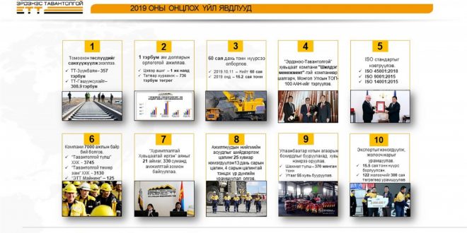 “Эрдэнэс-Тавантолгой” ХК өнгөрөгч 2019 онд 1 их наяд төгрөгийн цэвэр ашигтай ажиллаж ашгийн хэмжээгээрээ Монгол Улсын аж ахуйн нэгжүүдийг тэргүүлж байгаа юм.