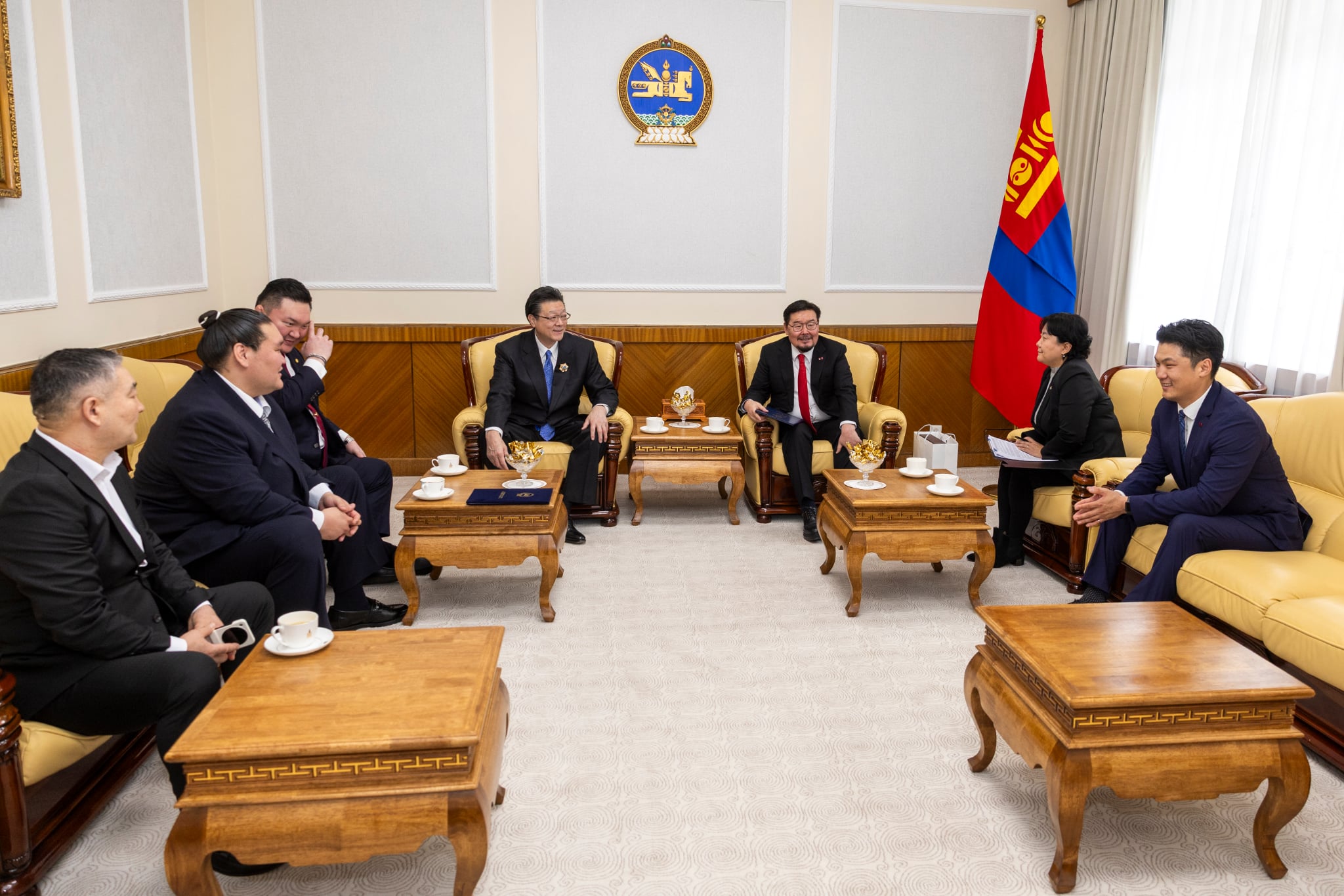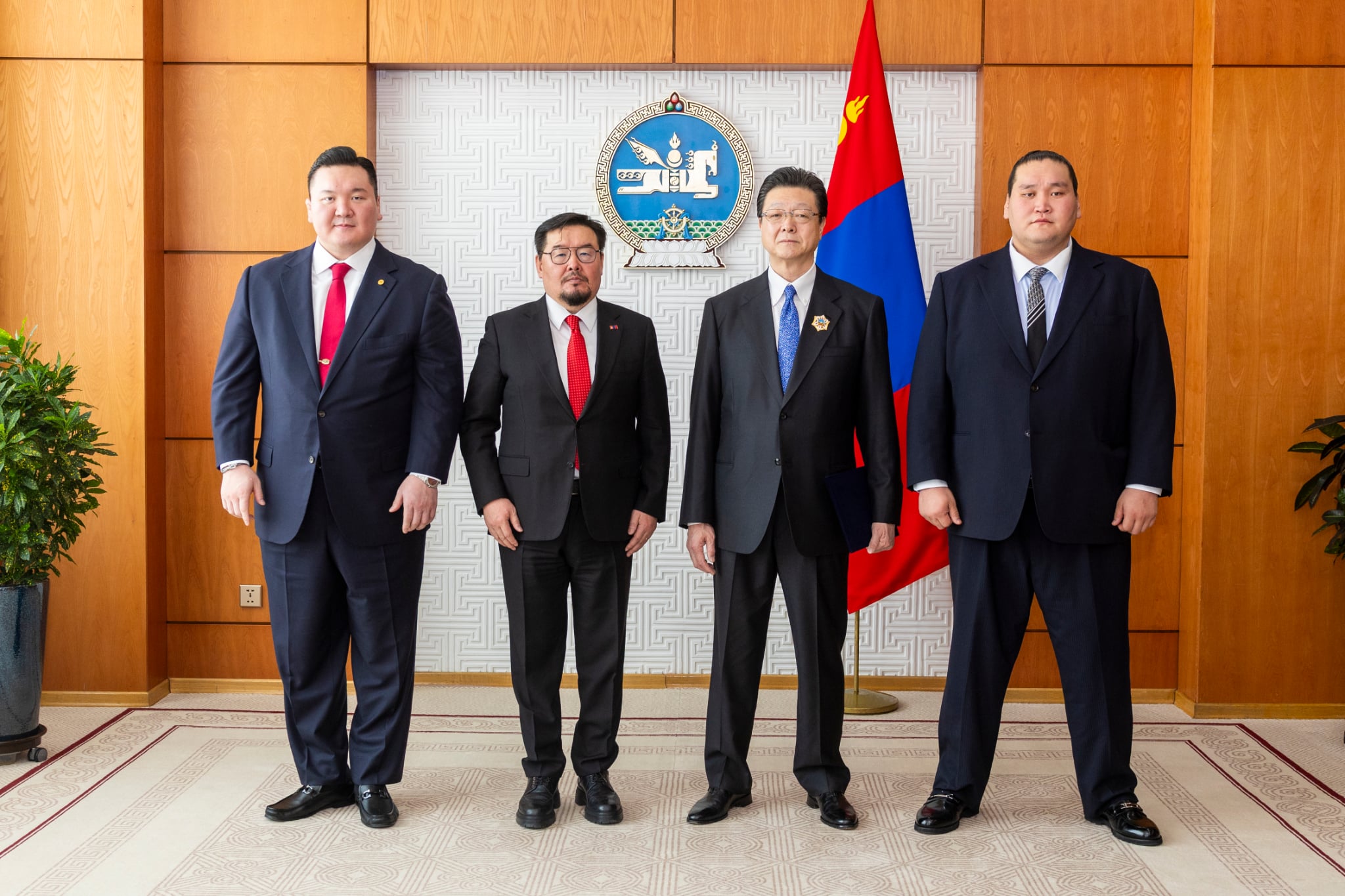 Монгол Улсын Ерөнхийлөгчийн Тамгын газрын дарга Г.Занданшатар шагнал гардуулсныхаа дараа “Исэгахама” дэвжээний багш Асахифүжи Сүгиномори Сэйяа, Япон Улсын мэргэжлийн сүмо бөхийн 69 дэх Их аварга Хакүхо М.Даваажаргал, 73 дахь Их аварга Тэрүнофүжи Г.Ган-Эрдэнэ нарыг хүлээн авч уулзлаа.