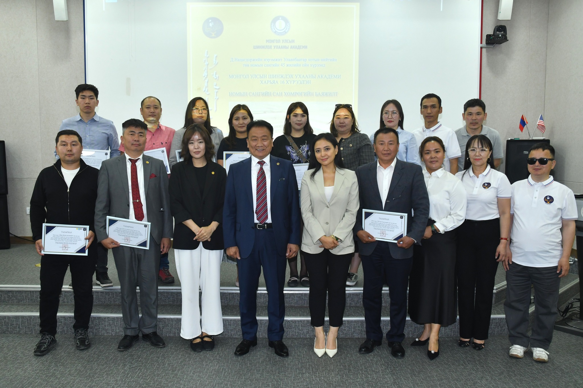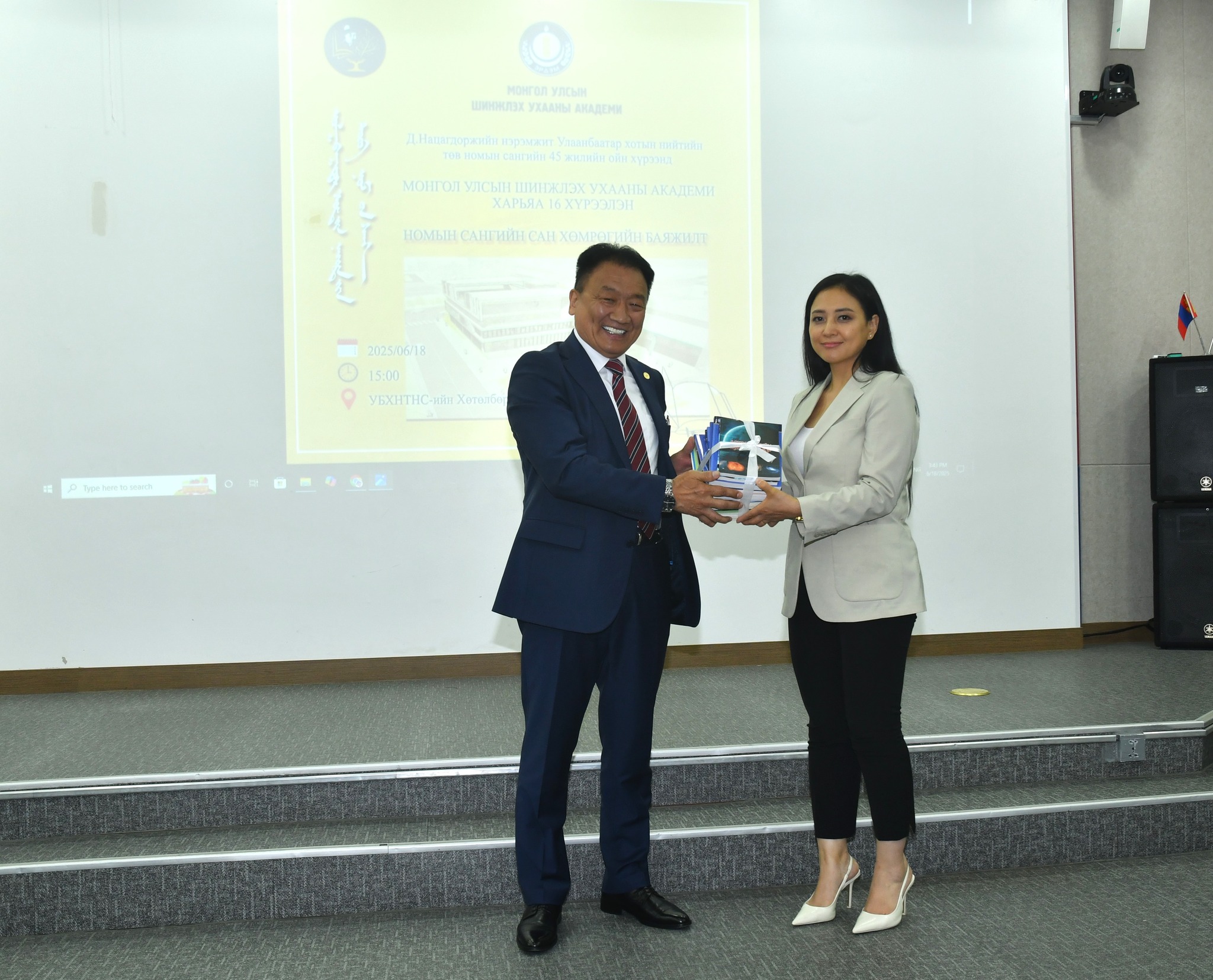 Шинжлэх ухааны академи болон харьяа 16 хүрээлэн, Тэргүүлэгчдийн газраас өчигдөр /2025.06.18/ Д.Нацагдоржийн нэрэмжит Улаанбаатар хотын нийтийн төв номын санд шинжлэх ухааны бүхий л салбарыг хамарсан 1100 гаруй эрдэм шинжилгээ, судалгааны бүтээл, ном, товхимлыг хандивлав.