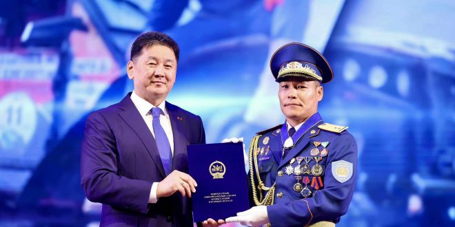 Шагналыг Онцгой байдлын албаны анхны сайд, Монгол Улсын Ерөнхийлөгч, Зэвсэгт хүчний Ерөнхий командлагч У.Хүрэлсүх гардууллаа.