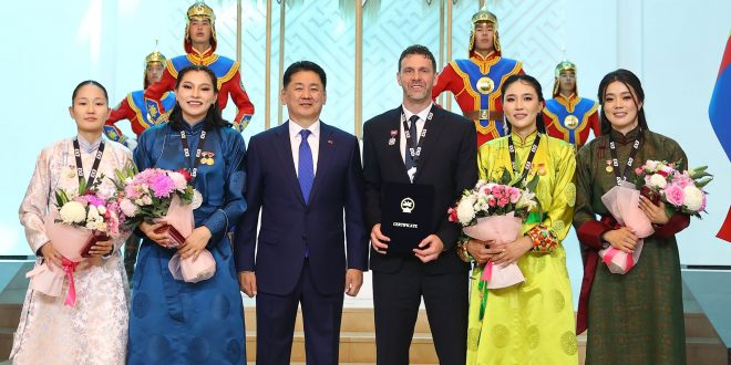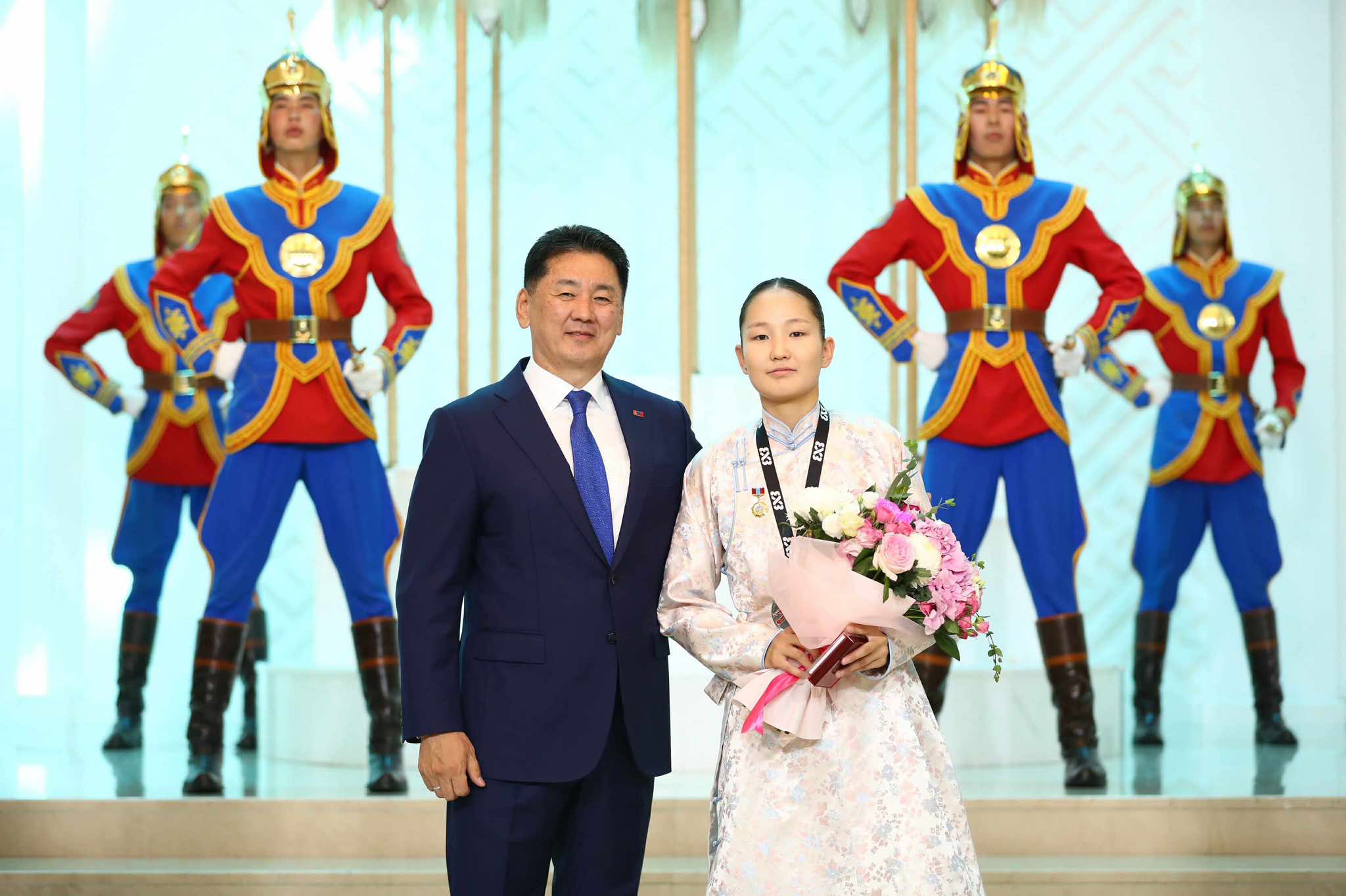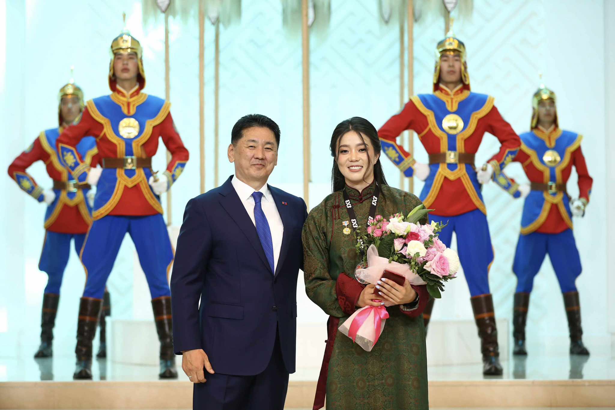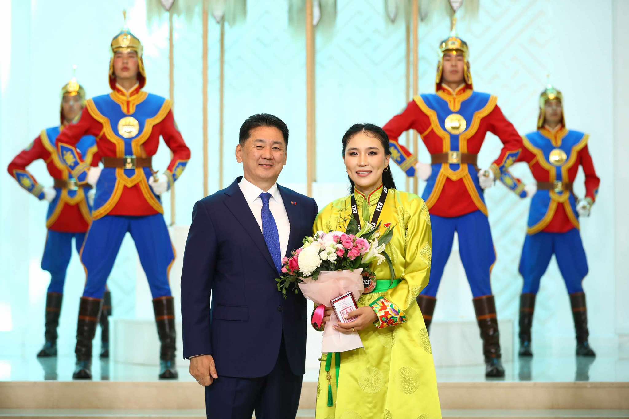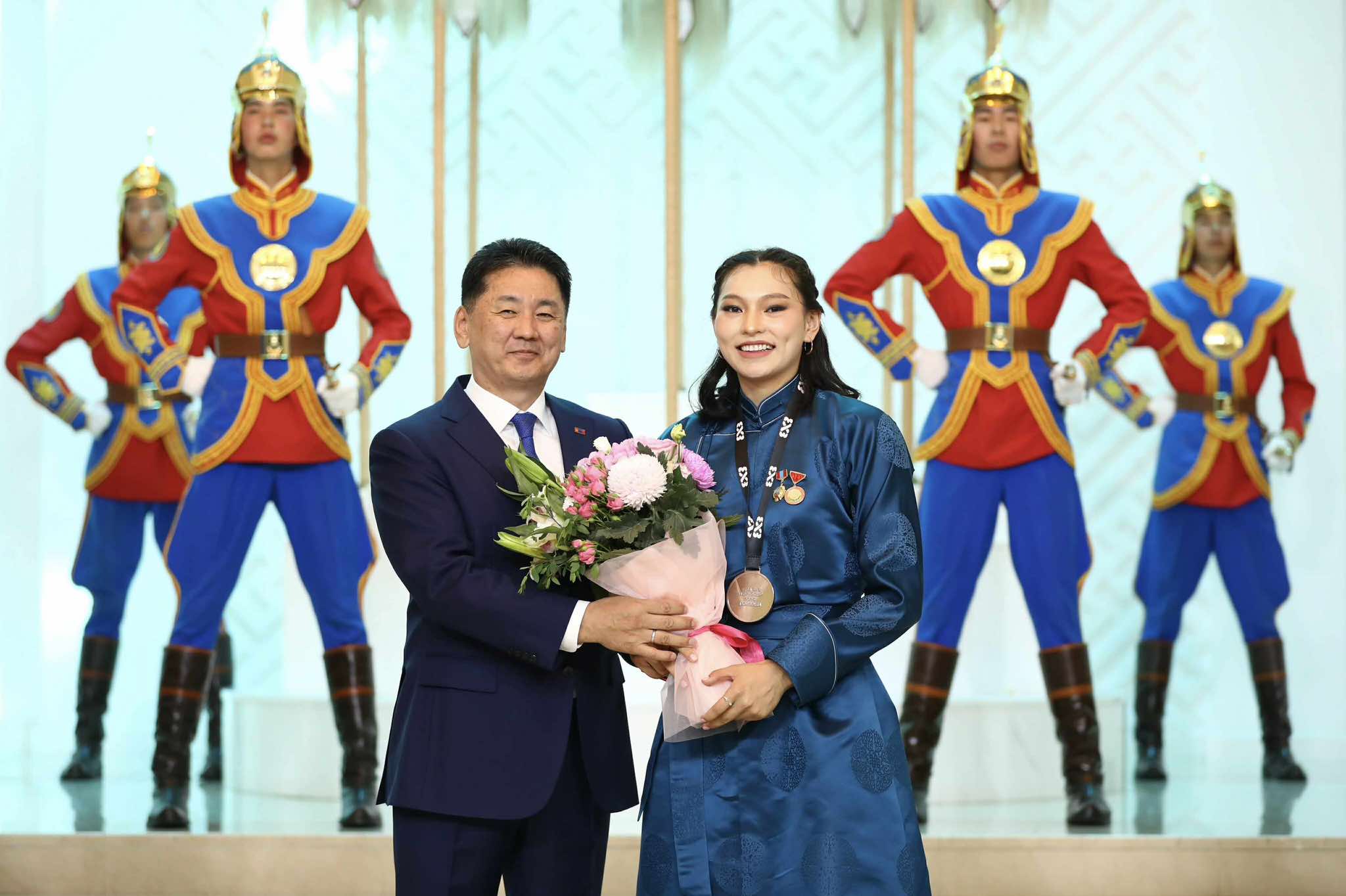 Монгол Улсын Ерөнхийлөгч Ухнаагийн Хүрэлсүх зарлиг буулган, Дэлхийн аварга шалгаруулах тэмцээнээс мөнгөн медаль хүртэж, улсынхаа нэрийг өндөрт өргөн, багийн спортын төрөлд онцгой амжилт үзүүлсэн 3×3 сагсан бөмбөгийн эмэгтэй шигшээ багийн тамирчдад Гавьяат тамирчин цол хүртээлээ.