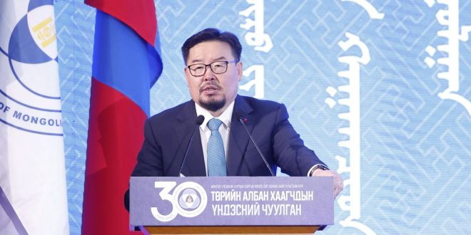 Тэрбээр, төрт ёсны түүх хоёр мянганы тэртээгээс нааш Их Монголын Эзэнт гүрнээр өртөөлөн, Богд хаант Монгол Улс, Ардын засаг, Ардчилсан төрийн түүхийг бүтээсэн он жилүүдийн товчоонд нэгэн цоо шинэ хуудас бичигдсэн нь өдгөөгөөс гурван арваны тэртээ Монгол Улс Төрийн албаны тухай тусгайлсан хуультай болж, төрийн албаны төв байгууллага Төрийн захиргааны албаны зөвлөл байгуулагдсан үйл явдал мөн хэмээн онцлоод өнгөрсөн 30 жилийн хугацаанд мэргэшсэн, тогтвортой, ил тод, хариуцлагатай, ёс зүйтэй, иргэддээ чин шударгаар үйлчилдэг шинэ төрийн, шинэ тогтолцоог төлөвшүүлэх, төрийн алба хаагчийн үйл ажиллагааг эрх зүйгээр дархлан баталгаажуулахад Төрийн албаны зөвлөл томоохон үүрэг гүйцэтгэсэн. Цаашдаа ч эрхэм журамт энэ үүргээ Төрийн албаны зөвлөл нэр төртэй гүйцэтгэсээр байна гэдэгт огт эргэлзэхгүй байна гэв.