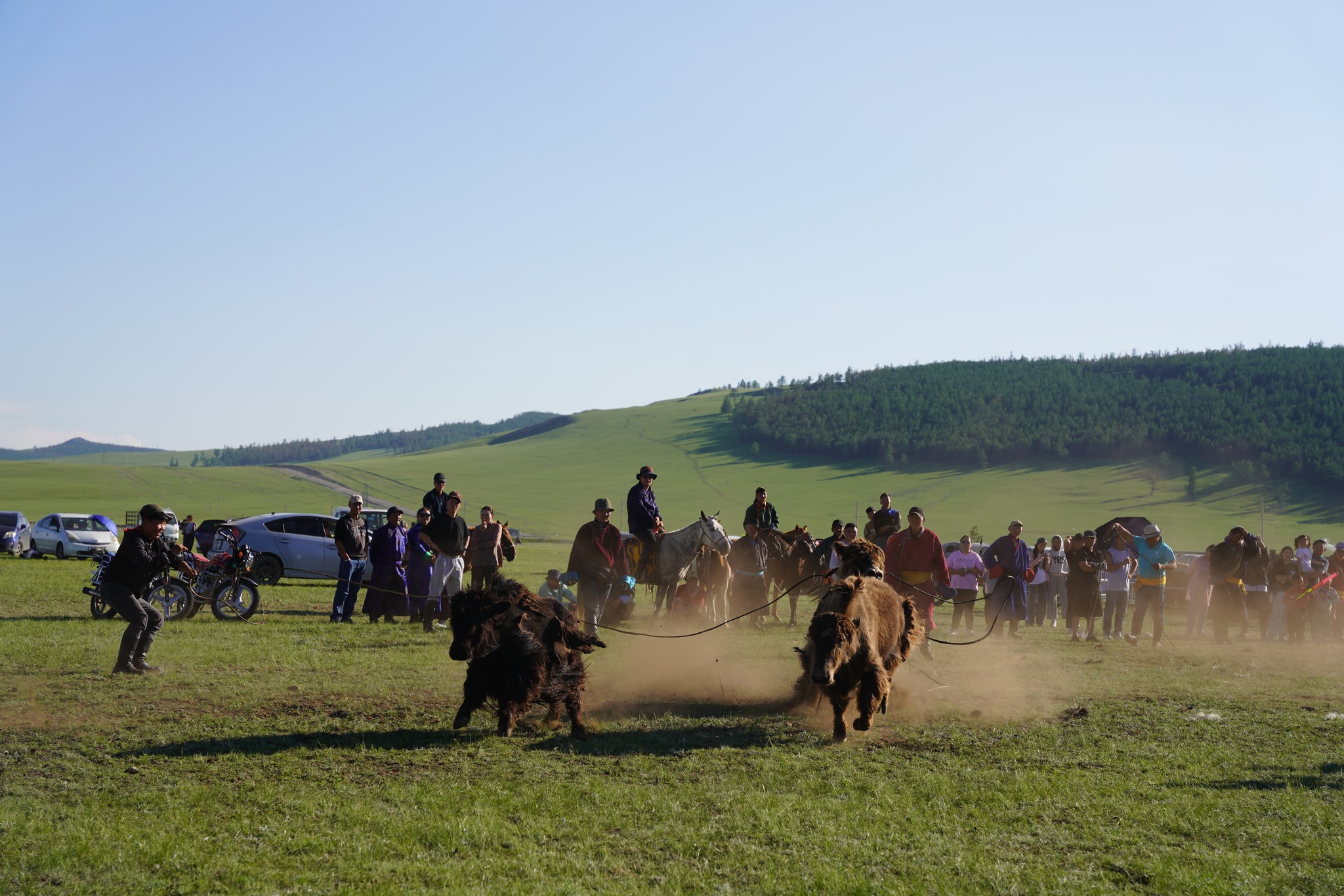 Тус наадмын сонирхолтой үзүүлбэрт яах аргагүй сарлаг бугуйлдах, булгиулах тэмцээн ордог. Энэ жил эдгээр тэмцээнд өрсөлдөгч залуус эрс нэмэгдэж, 187 малчин залуу сарлаг бугуйлдан, 84 залуу сарлаг булгиулж өрсөлдлөө. Хөвсгөл аймгийн Алаг-Эрдэнэ сумын малчин Б.Сүхбаатар эмнэг сарлагийн нуруун дээр 28 секунд тогтож түрүүлсэн бол Арбулаг сумын залуу малчин Н.Буяндэлгэр 6 бугуйл шидснээс 5 бугуйлдаж түрүүлэв. Орой тугалаа хашчихаад үхэрнүүдээ бугуйлдаж бэлтгэл хийсэн гэж тэр ярилаа.